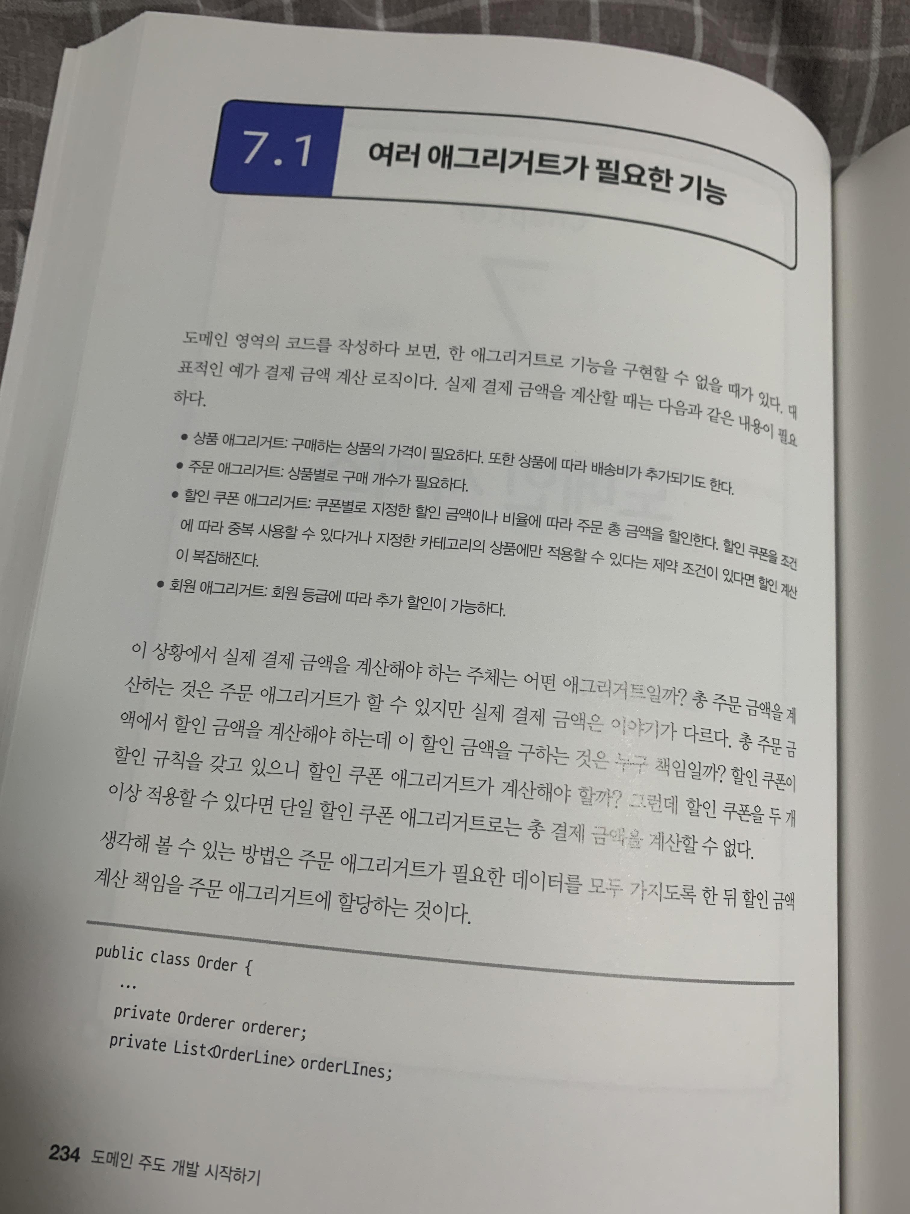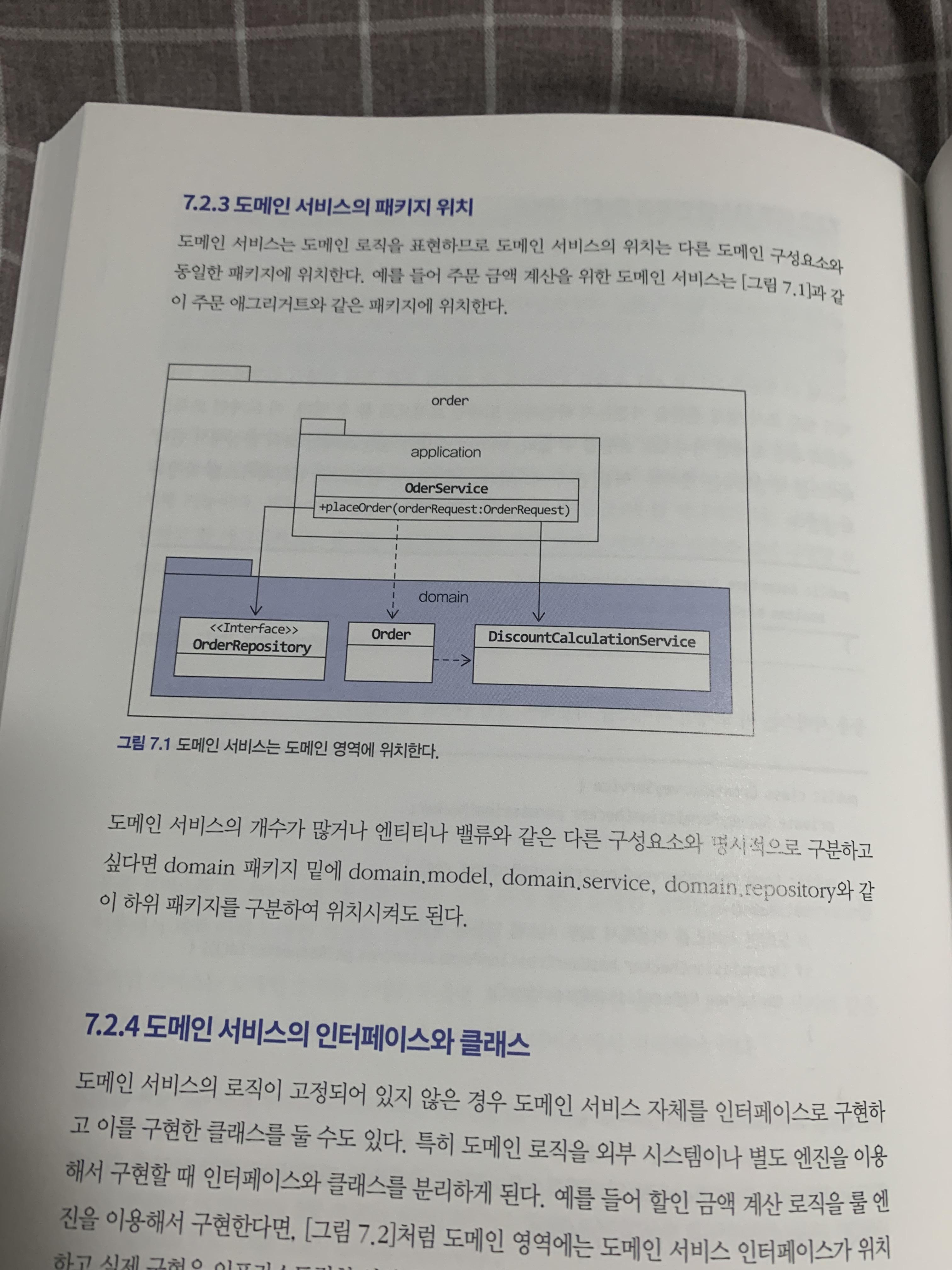 7장의 경우 도메인 서비스, DDD에서는 대부분의 행위가 도메인 자체에 정의되어 있다.