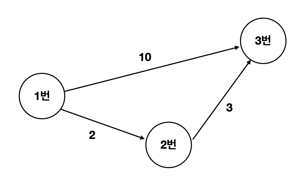 1번 지점에서 3번 지점까지 한번에 가면 10초가 걸린다.
