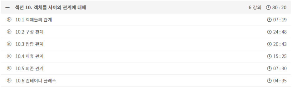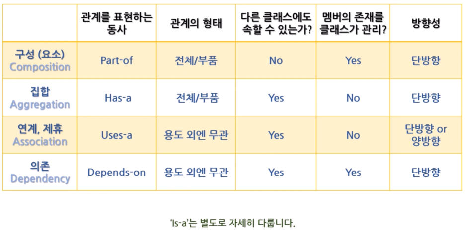 ◆ 10-1 class에는 크게 4가지의 관계들이 있었다. 구성, 집합, 연계, 의존 관계가 있었으며 각각에 대해서는 코드를 보면 더욱 명확히 히해할수 있다.