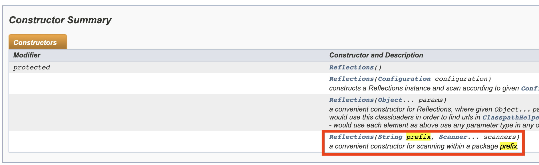 생성자는 다음과 같이 prefix를 사용하여, 특정 package 하부의 class들만 등록하도록 만들었다.
