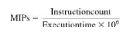 실행시간 대신에 쓸 수 있는 성능 척도 중 하나로 MIPS(million instructions per second)가 있다.