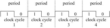 클럭 주기(clock period)는 한 클럭 사이클에 걸리는 시간(예를 들면 250picosecond, 즉 250ps)이나 클럭 속도(예를 들면 4GHz)로 표시한다. 클럭 속도는 클럭 주기의 역수이다.