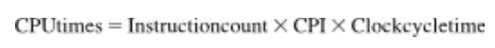 위 공식을 보면, 클럭 사이클의 길이를 줄이거나 프로그램 실행에 필요한 클럭 사이클 수를 줄이면 성능을 개선할 수 있음을 알 수 있다.