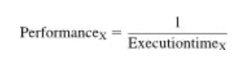 그러므로 두 컴퓨터 X와 Y에 대해 X의 성능이 Y의 성능보다 좋다면, 실행시간Y > 실행시간X가 된다.