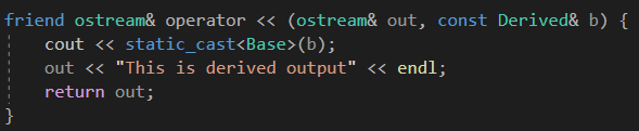 friend ostream& operator << (ostream& out, const Derived& b) {
