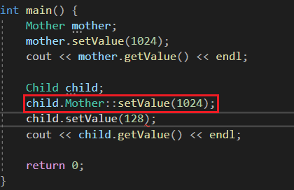 위의 코드와 같이 m_i의 값의 초기화를 Mother::setValue(i_in);을 통하여 우회하는 방식으로 하는 것 이다. 또한 main함수에서도 이를 활용하여 초기화 해줄 수 있다.