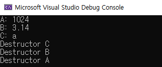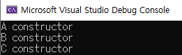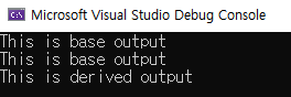 위의 코드를 보면 Derived class 안의 print()에서 Base::print()를 호출하고, 자신의 I'm derived문도 출력하고 있다. 여기서 만약 잘못하고 앞에 Base를 Base::print()에서 빼먹고 print()만을 적어주면 무한loop에 빠지게 된다. 사용자가 생각으로는 부모 class의 print()를 호출할려 한거지만 실제로는 자식의 print()문이 loop를 돌게되는 것 이다. 위의 예제의 결과는 다음과 같다.