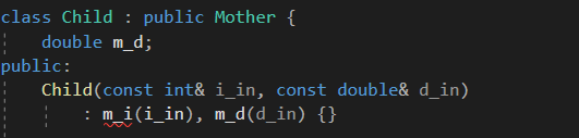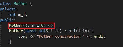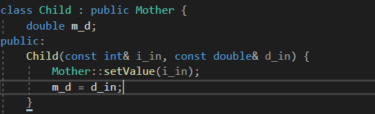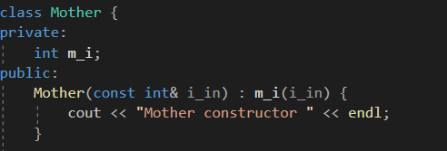 Child class가 들어온 int값(i_in) 을 Mother class에 넣어주면서 생성자를 호출하는 것 이다.