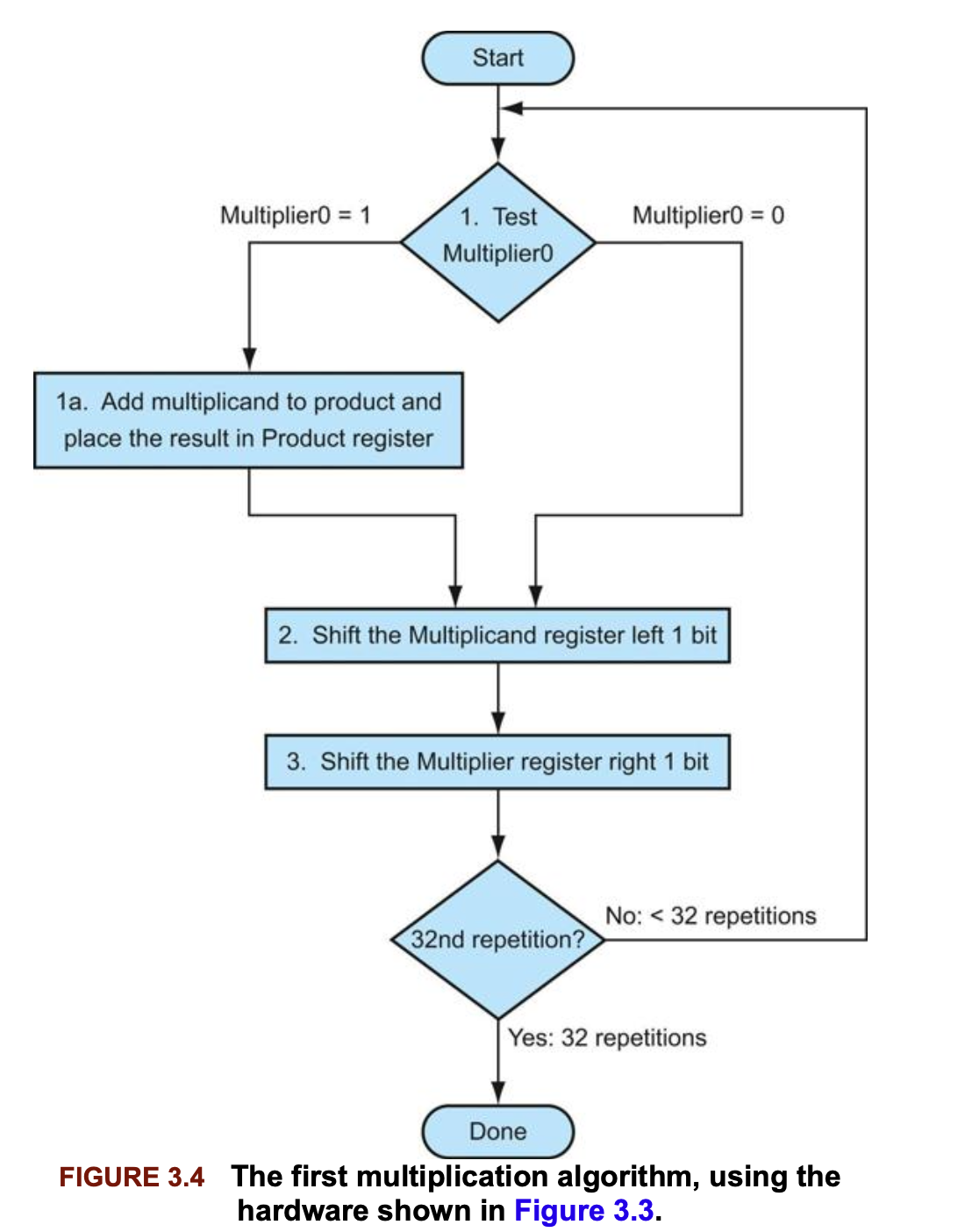 3.3.1) 곱셈 알고리즘과 하드웨어의 순차적 버전