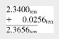 두수를 더하기 위해서는 먼저 작은 지수를 갖는 수의 소수점을 정렬해야 한다.