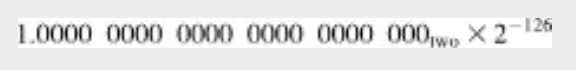 예를 들어 정규화된 양수 단일 정밀도 수 중에서 가장 작은 것은 다음과 같다.