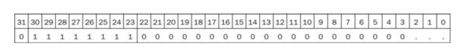 따라서 -1은 -1 + 127 = 126 즉, 0111 1110(2진수)라는 비트 패턴으로 표현된다.