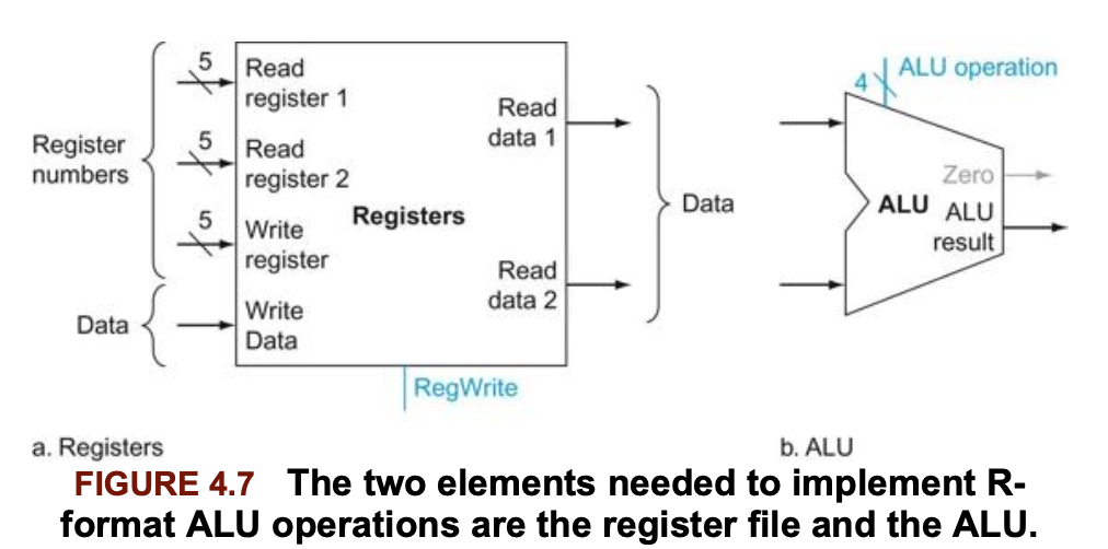 따라서 그림 4.7의 레지스터 파일과 ALU가 둘 다 필요하다.