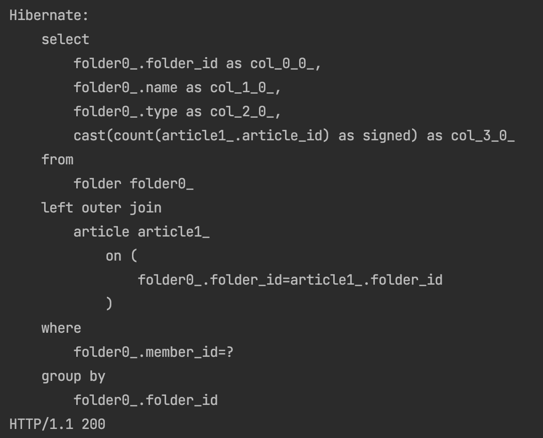 필요로 하는 Folder데이터와 Article 데이터를 한 번에 Fetch Join 해오는 것을 확인할 수 있습니다!!