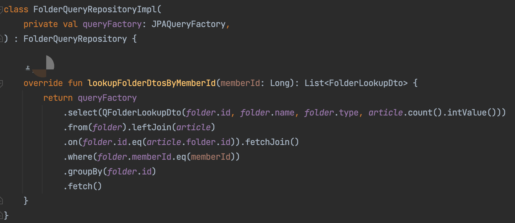 특정 유저의 모든 Folder를 찾아온 후, Folder에 포함된 Article의 사이즈를 구하는 가장 간단한 로직은 대략 다음과 같아지는데...