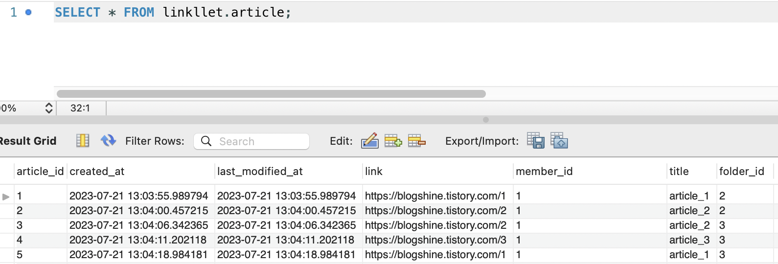 ▶ Article 테이블 데이터