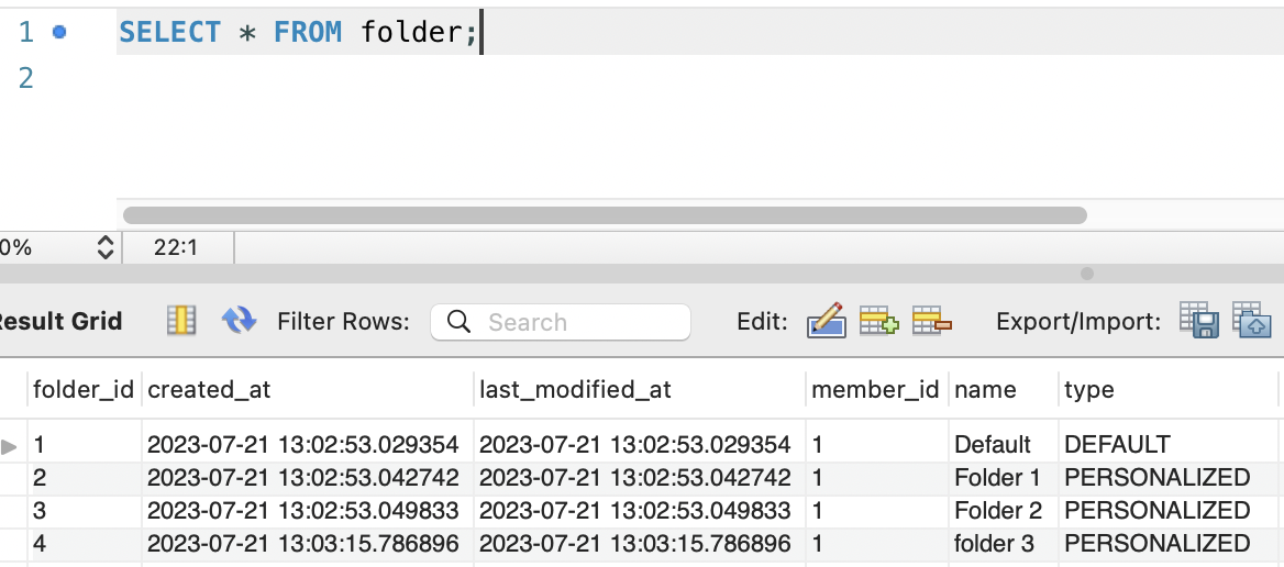 ▶ Folder 테이블 데이터