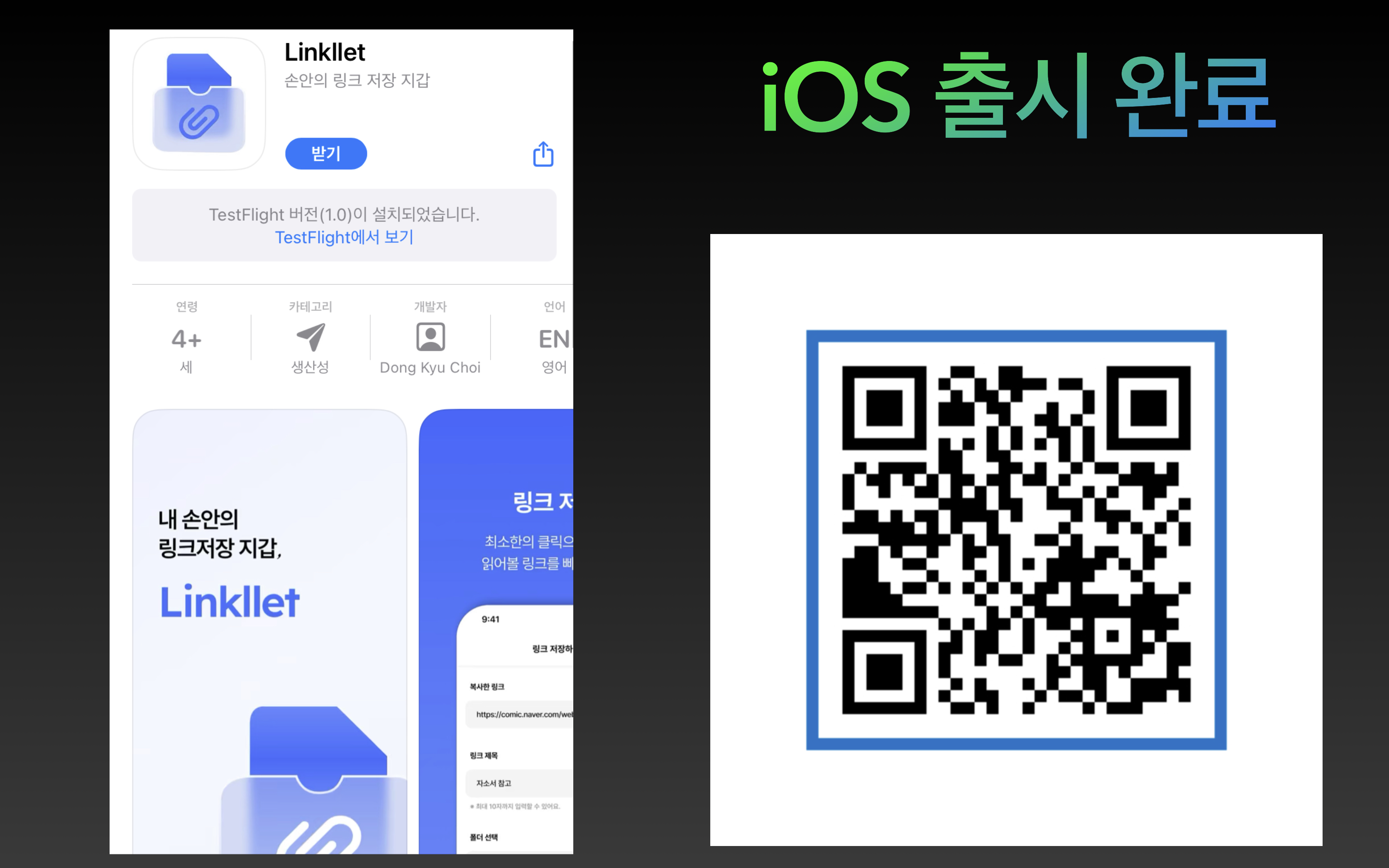 스토어에 Linkllet 앱을 배포하게 되었다!, 당시에 안드로이드는 심사 중이라 배포가 되지 못했지만, 금방 2일 안에 배포되어 현제는 구글스토어에서도 확인해 볼 수 있다!