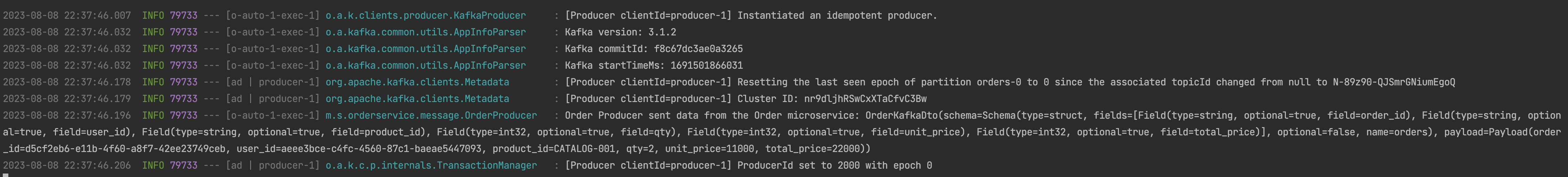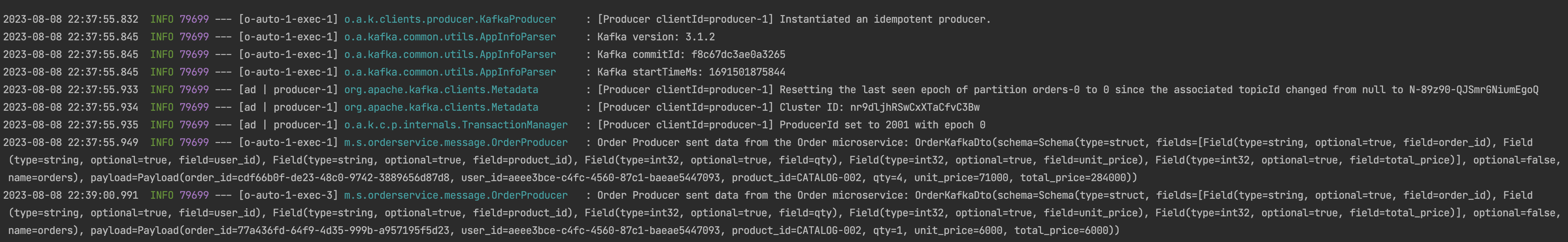 log.info("Order Producer sent data from the Order microservice: " + kafkaOrderDto);