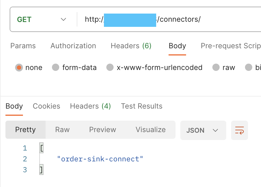 이후 connectors조회 api를 통해 생성된 것을 확인할 수 있다.