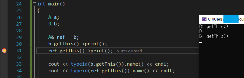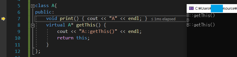 이는 B가 가상함수처럼 작동하기 때문이다. 다음 코드를 확인해보자.