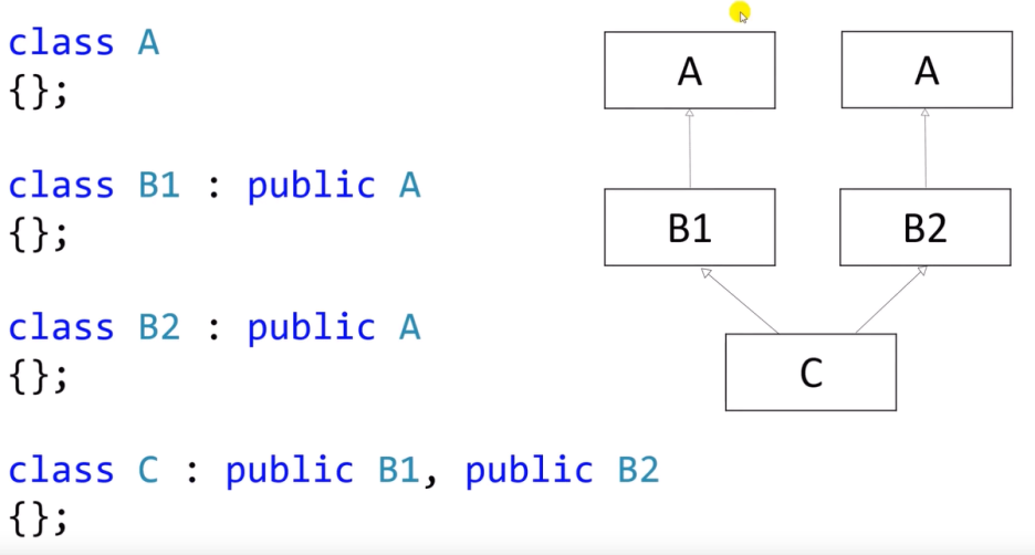 그럼 이러한 의문이 들 수 있다. A의 함수가 virtual인 상황에서 C는 어찌될까? B가 A를 상속받긴 했지만 B에는 virtual이라 명시되있지 않으니 말이다?? C가 출력될까? A가 출력될까? 혹 그도아니라면 B가 출력될까? 답부터 말하면 C가 출력된다.