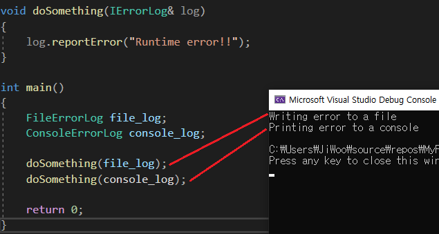 마지막으로는 포인터로 사용하는것을 확인해 보자. 다형성이 잘 적용되고 있다.