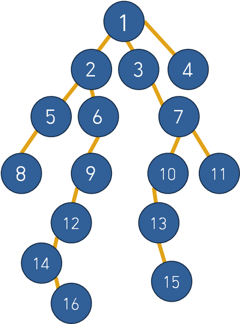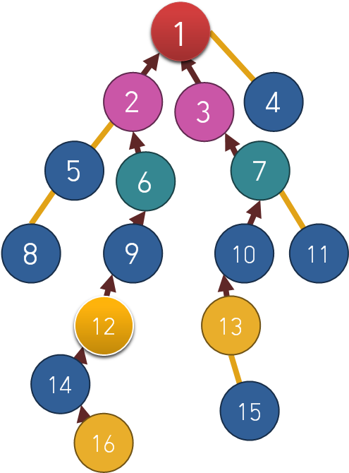 다음 트리의 16번 Node와 13번 Node의 LCA를 찾아보자!