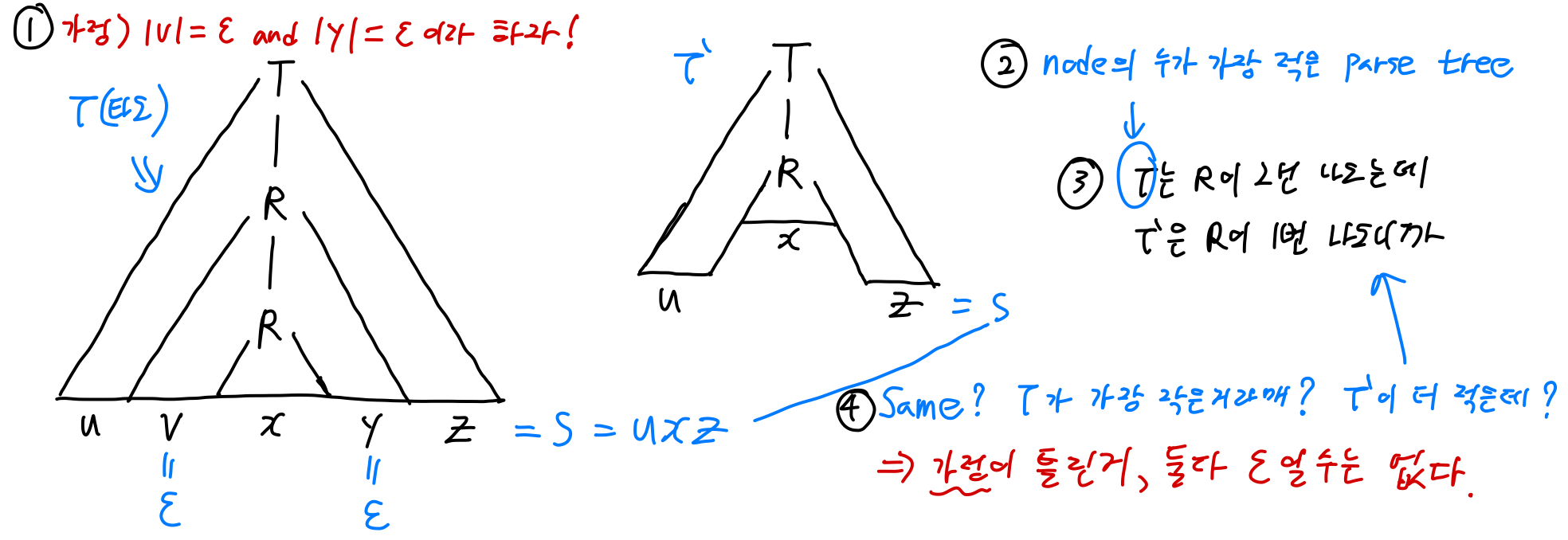 즉, 이미 가장 적은 노드를 갖는 타오를 선택하였는데, 타오프라임은 더 작은 parse tree가 되어 모순이 발생하는 것 이다.