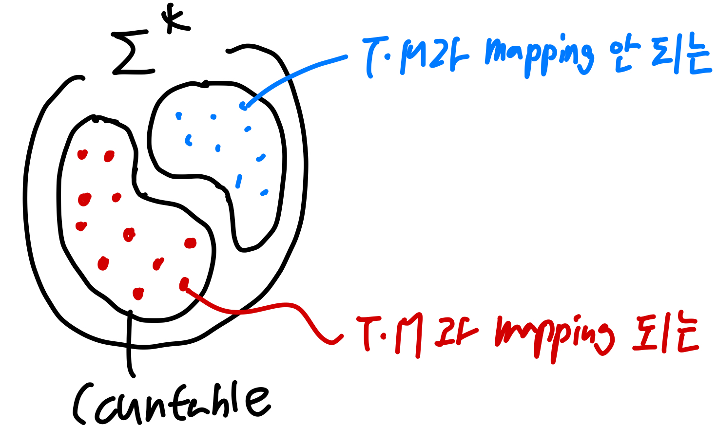 이렇게 mapping되지 않는 부분을 전부 제거하면 모든 T.M은 자연수와 mapping이 가능하기 때문에 Countable이다.