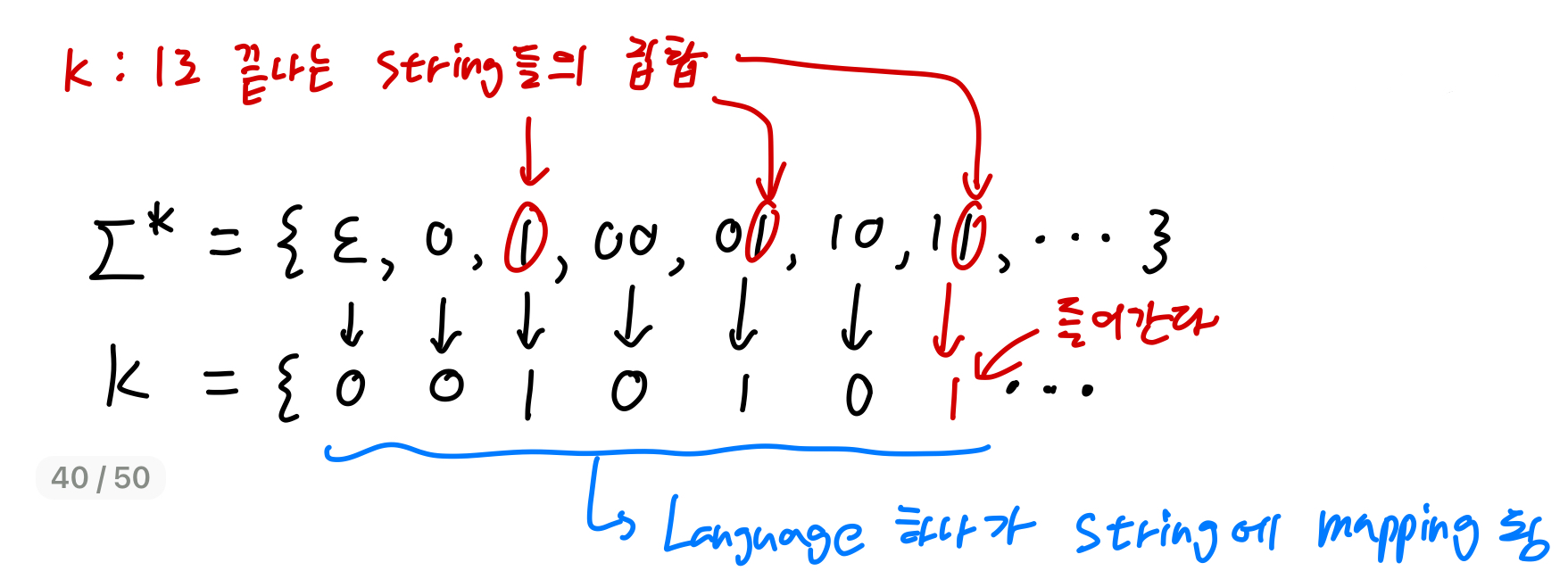 즉, Language 하나를 B의 infinite binary sequences로 Mapping이 가능한 것 이다.