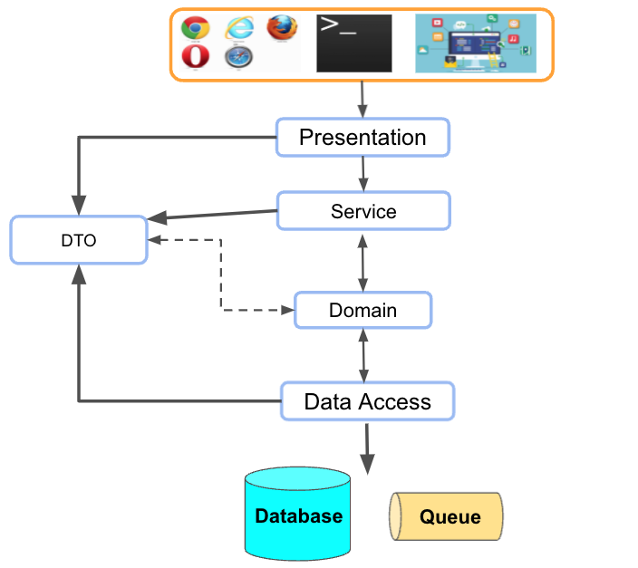 마틴 파울러의 책, PoEAA (Pattern of Enterprise Application Architecture: 엔터프라이즈 애플리케이션 아키텍처 패턴)을 보면 대표적인 3 계층을 소개하는 파트가 있다. 이름도 그 흔한, 3-tire-아키텍처, 또는 계층형 아키텍처 등 부르는 이름도 은근 다양하다.