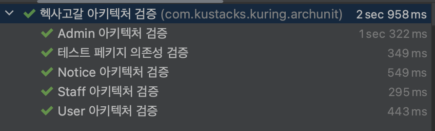 한눈에 보이듯, boundedContext를 시작으로 domain, application, adapter 등을 검사하며, 의존성의 방향을 확인할 수 있었다.
