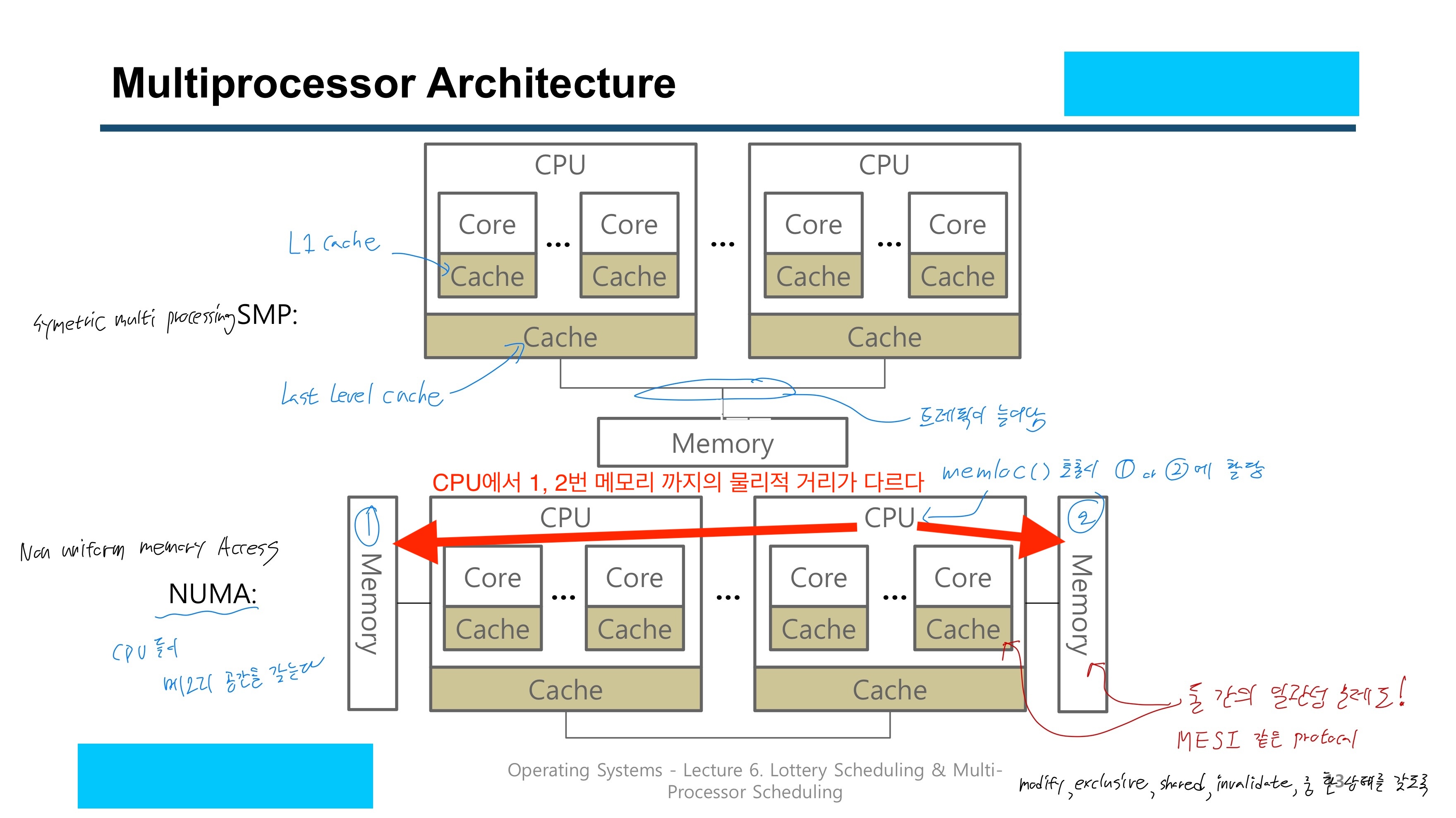 위 그림의 NUMA(Non uniform memory access)에서 알 수 있듯,