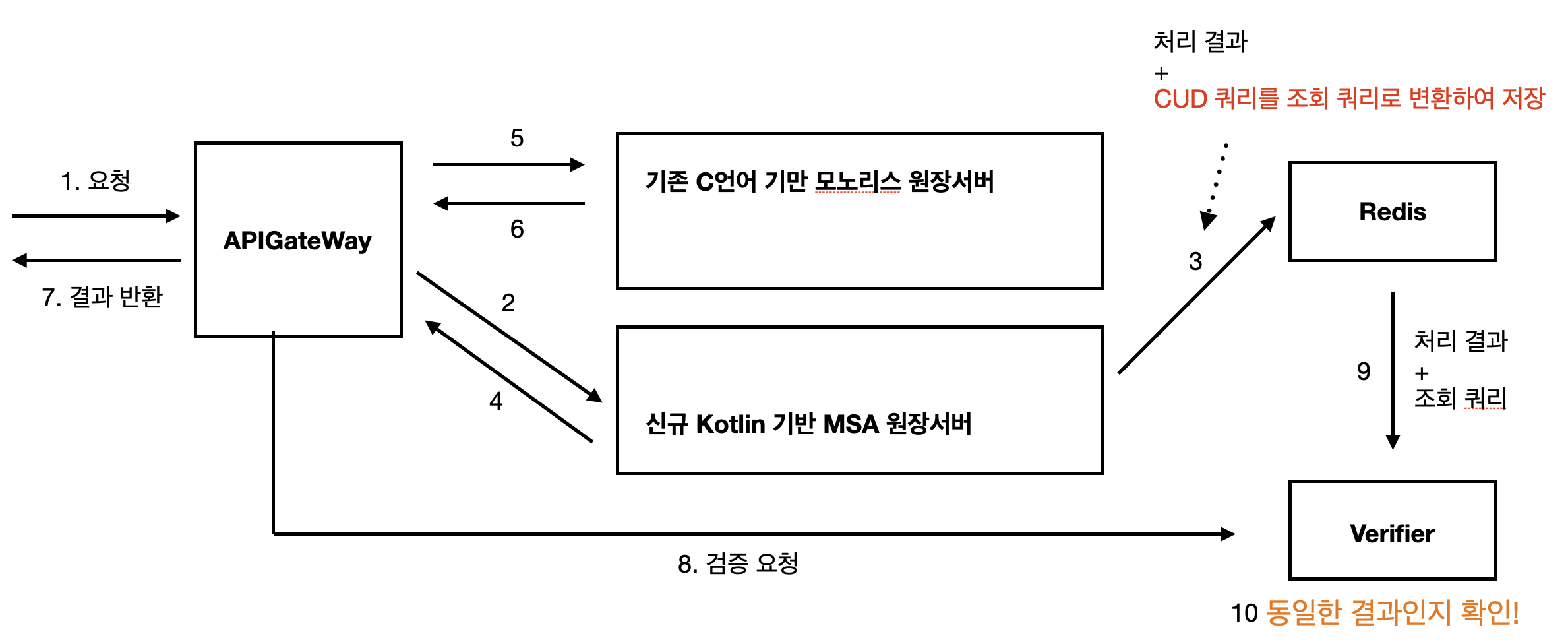 기존의 C기반의 Monolithic 한 원장 시스템을 -> Kotlin 기반의 MSA 원장으로 전환하면서 경험하신 내용인 것 같다.