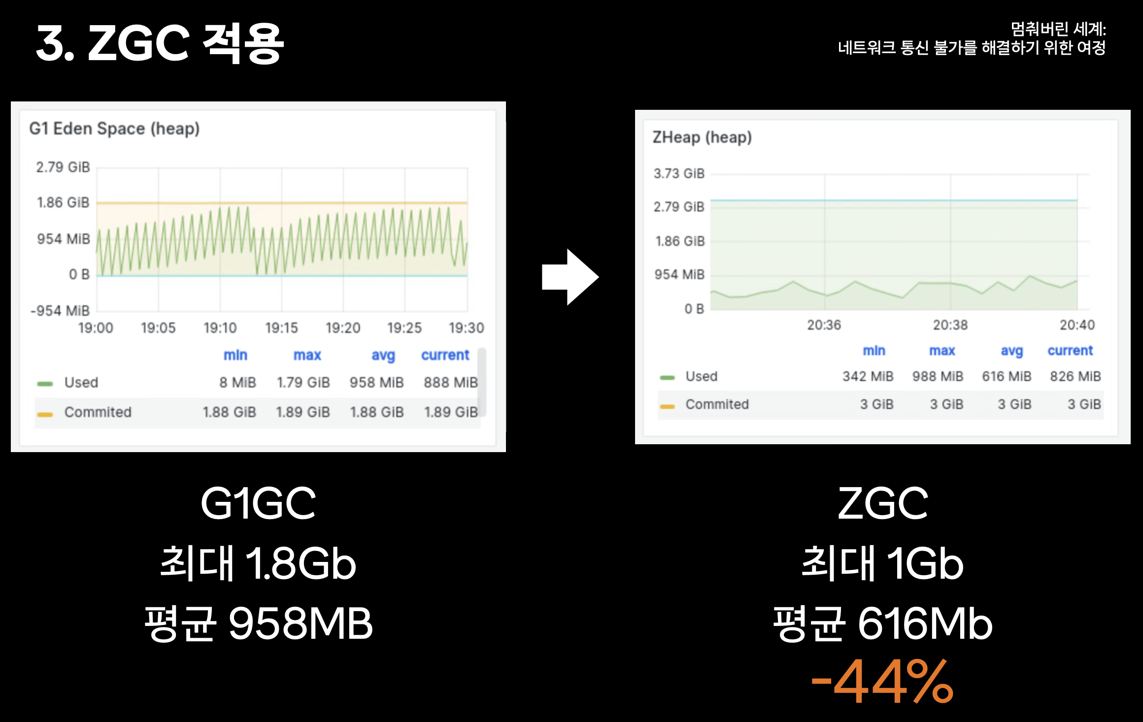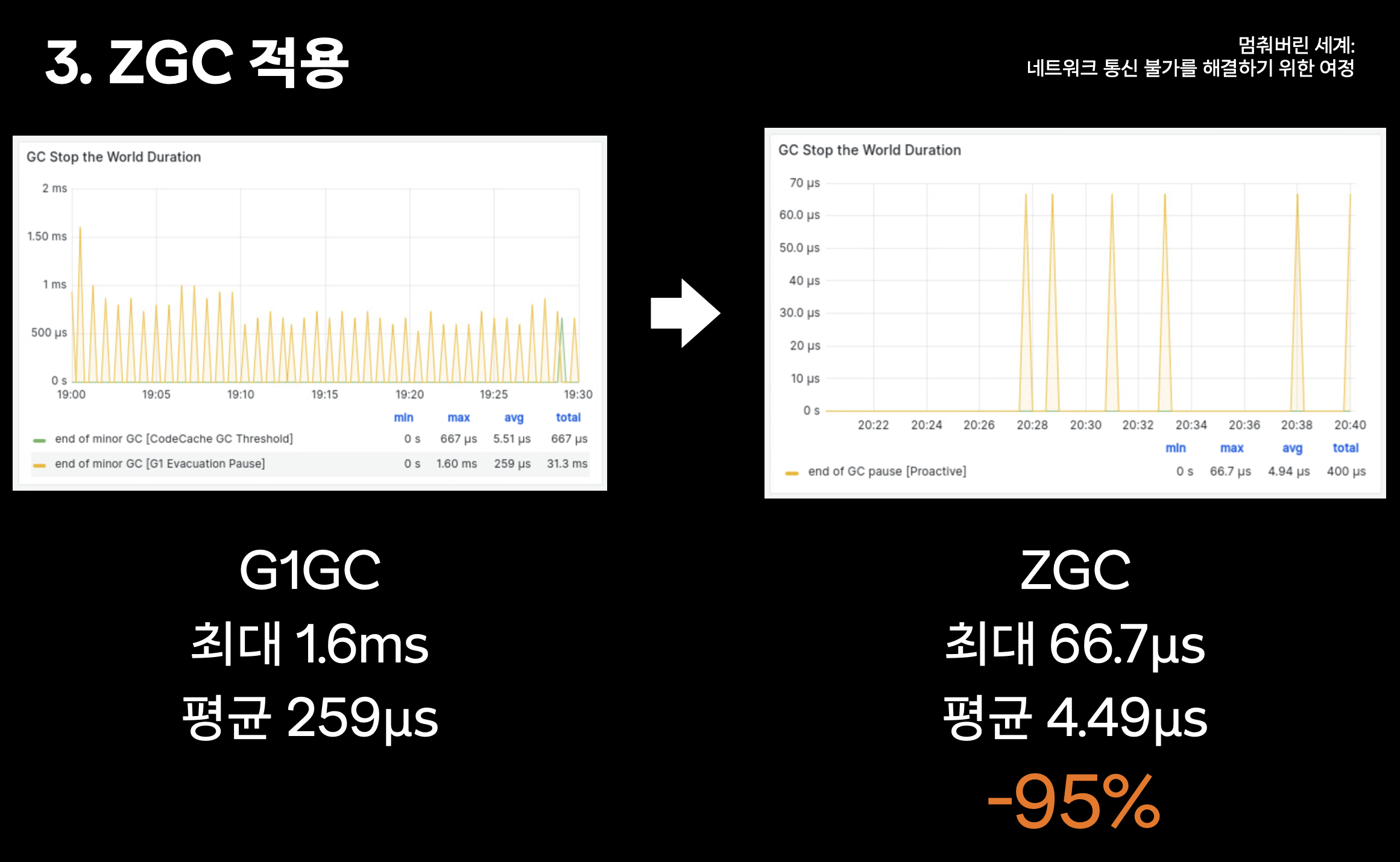 ZGC를 도입하여 이전 GC대비 느렸던 부분을 개선할 수 있었다고 한다!