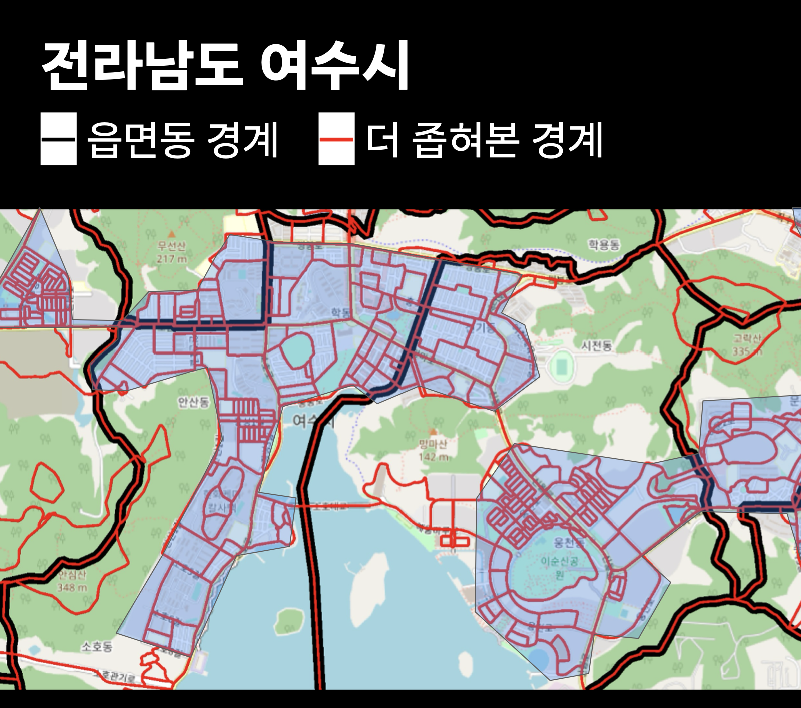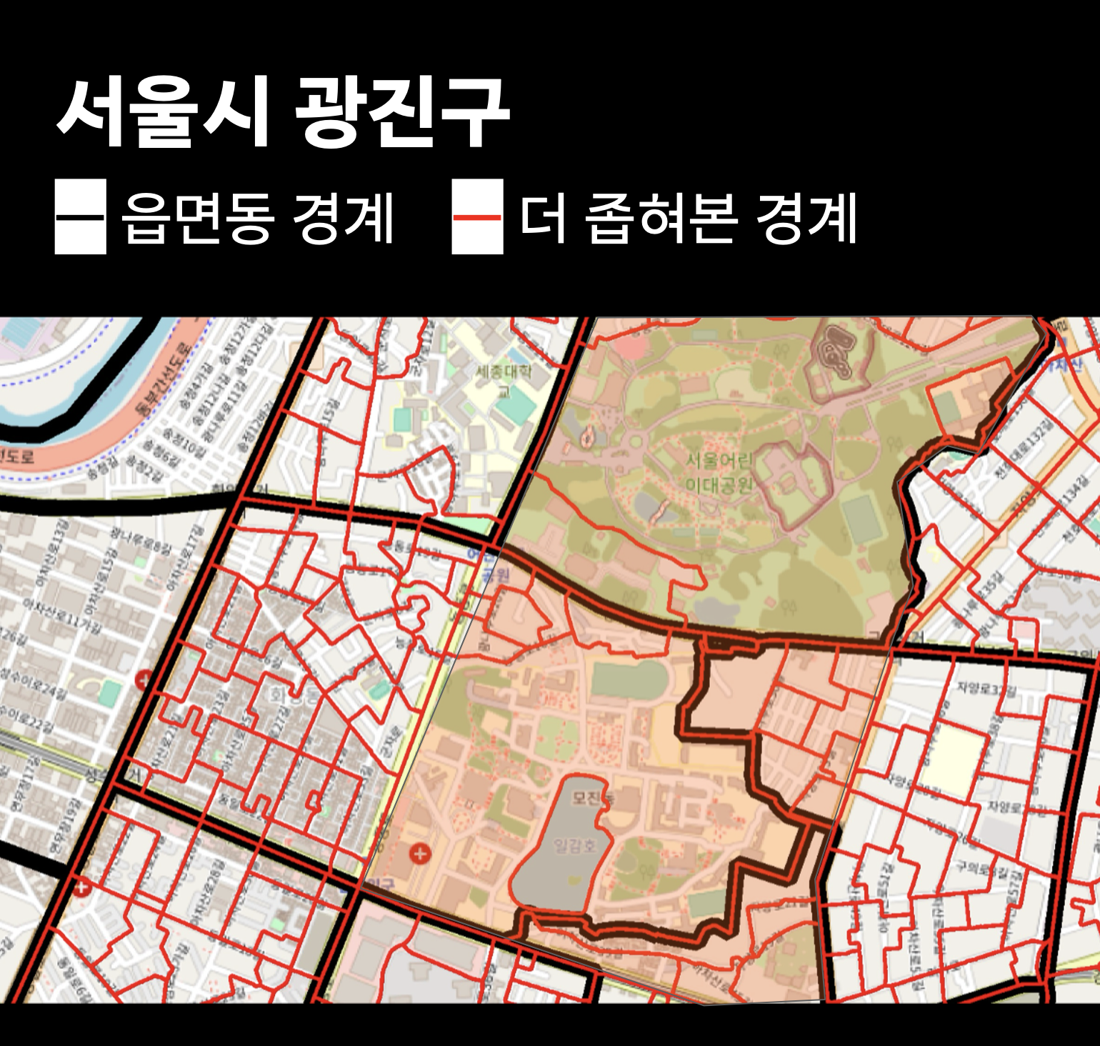 또한 경계 간 겹치는 부분은 중복제거를 하여 단일 영역으로 바꿔주는 작업 또한 진행되었다고 한다.