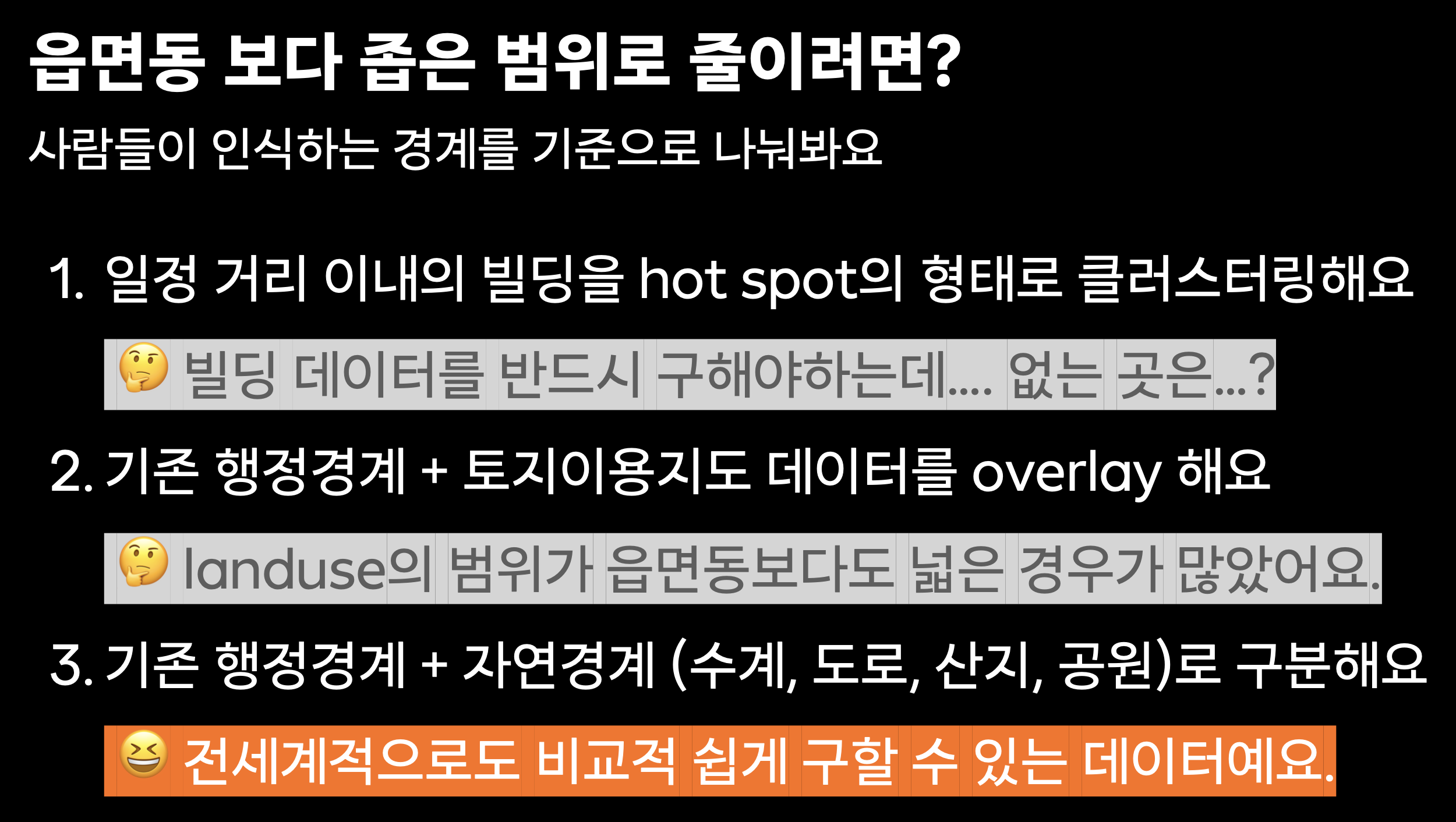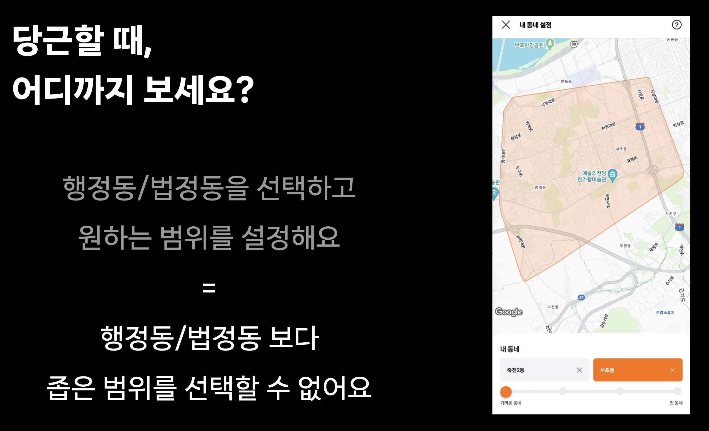 따라서, 당근도 행정동/법정도 의 범위를 충분하게 지원하고 있지만, 더 나아갈 방향에 대한 고민이 많았던 것으로 생각된다.
