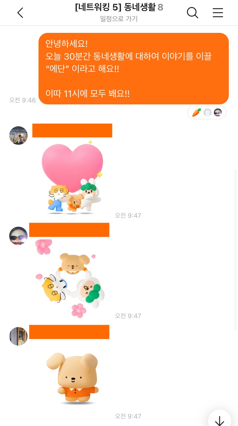 바로, 11시부터 내가 주인공이 되어 "동네생활"이라는 주제로 네트워킹을 하는 세션을 열었기 때문이다!