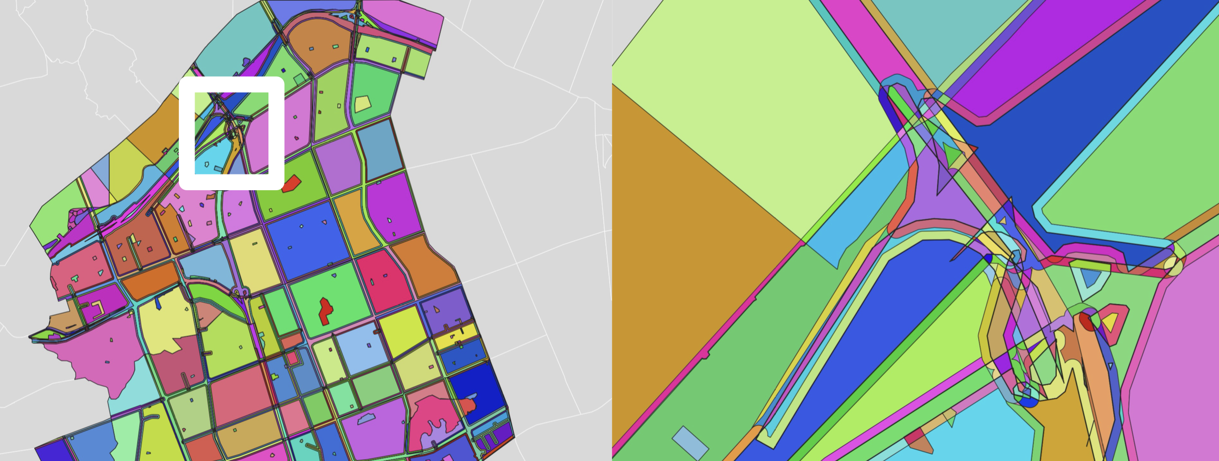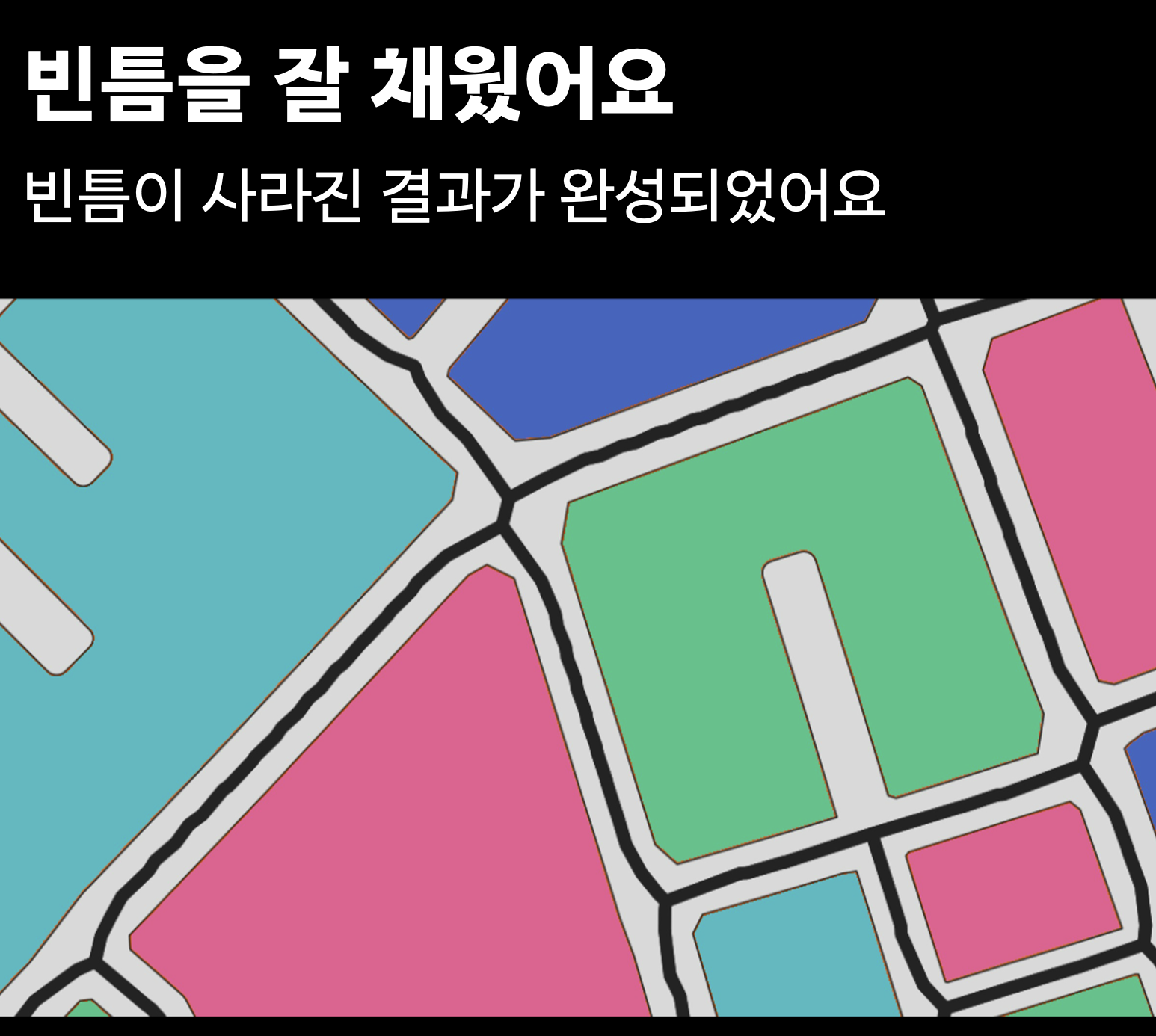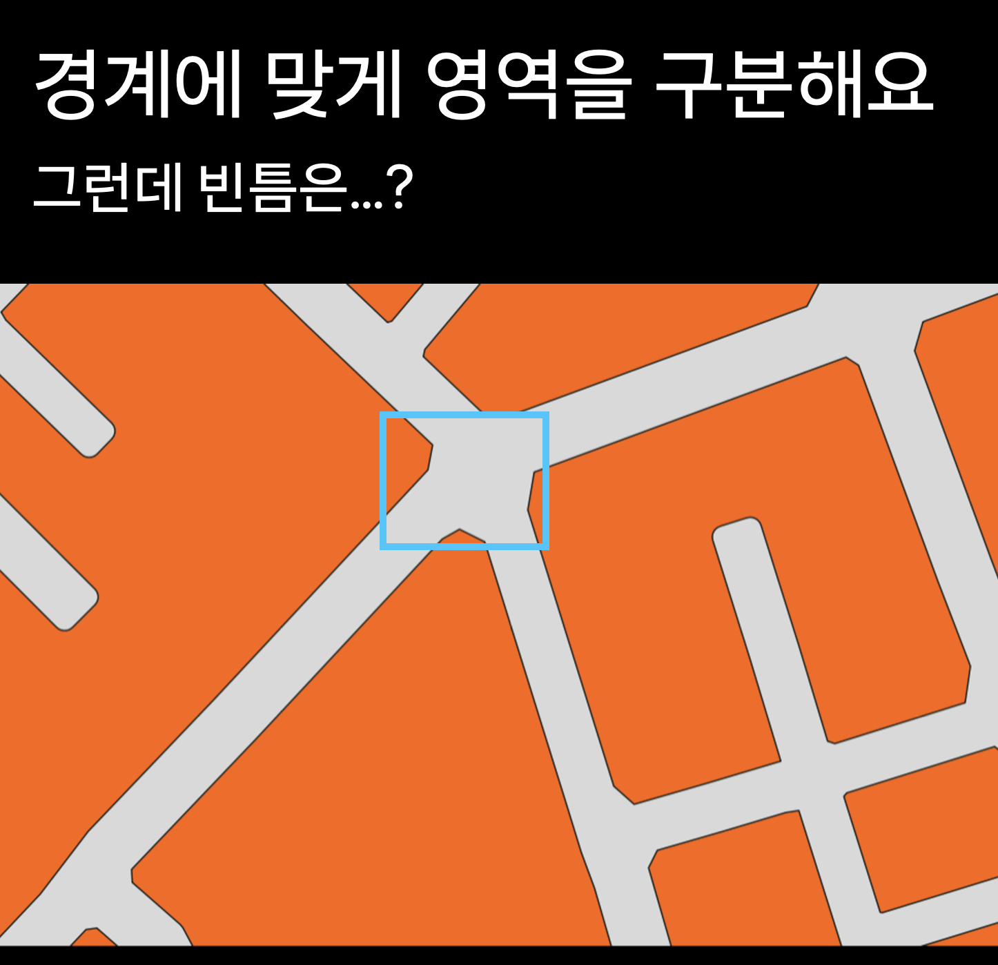 따라서 모든 영역을 개별영역으로 만들어 overlay 하는 작업을 통해 다음과 같이 구분되었지만, 아직도 경계 사이사이에 빈틈이 생겨났기에 이를 해결해야 할 필요가 있었다.