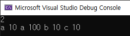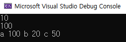 결과는 이전과 같이 순서대로 a 100 b 20 c 50 으로 나온다. 자세한 이유는 자료구조 시간에 배울거라 하셨다.