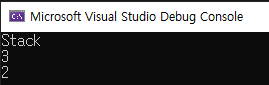 top을 통해 3이 출력후 pop을 통해 제거된뒤 다시 확인해보니 그다음 top인 2가 출력되었다.