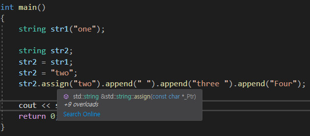 여기서 주의하고 봐야할 점이 assign()의 반환값이 string&이라는 점 이다. 참조형이다!!
