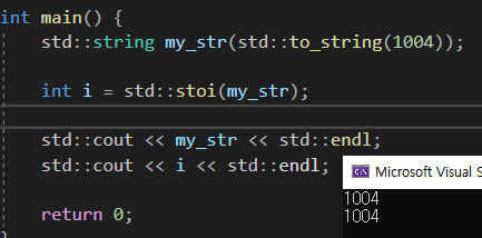 또한 다음과 같이 stoi함수를 사용하여 문자열을 다시 정수로 변환이 가능하다.
