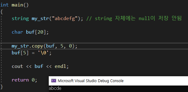 마지막으로 string을 C스타일의 array로 바꿔주는 방법이 하나 더 있다. copy를 하는 것 이다.