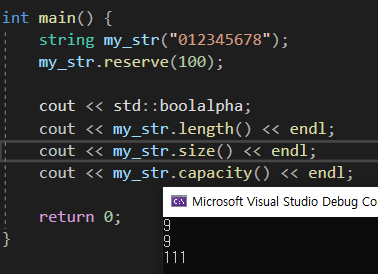 string 또한 이전에 배운 vector 처럼 길이와 용량이 별도로 관리된다.