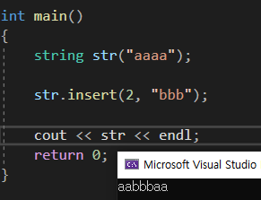 str에 index 2번위치에 "bbb"를 삽입해 주고 있다.