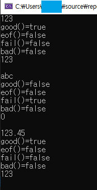 cout << "good()=" << stream.good() << endl; // 상태가 좋으면 true