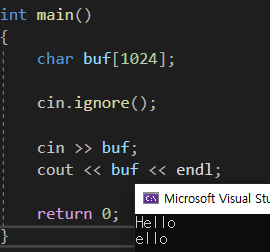 빈칸까지 포함하면서 갖어오고 싶다면 cin.get(ch)을 사용하면 된다. 다음 사용 예를 확인해보자.