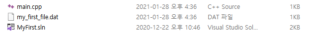 ofstream ofs("my_first_file.dat"); //생성자의 인자로 파일이름 넘기기